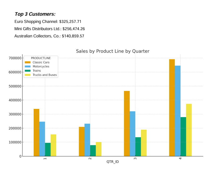 - Top 3 Customers: Euro Shopping Channel; Mini Gifts Distributors Ltd.; Australian Collectors, Co.
