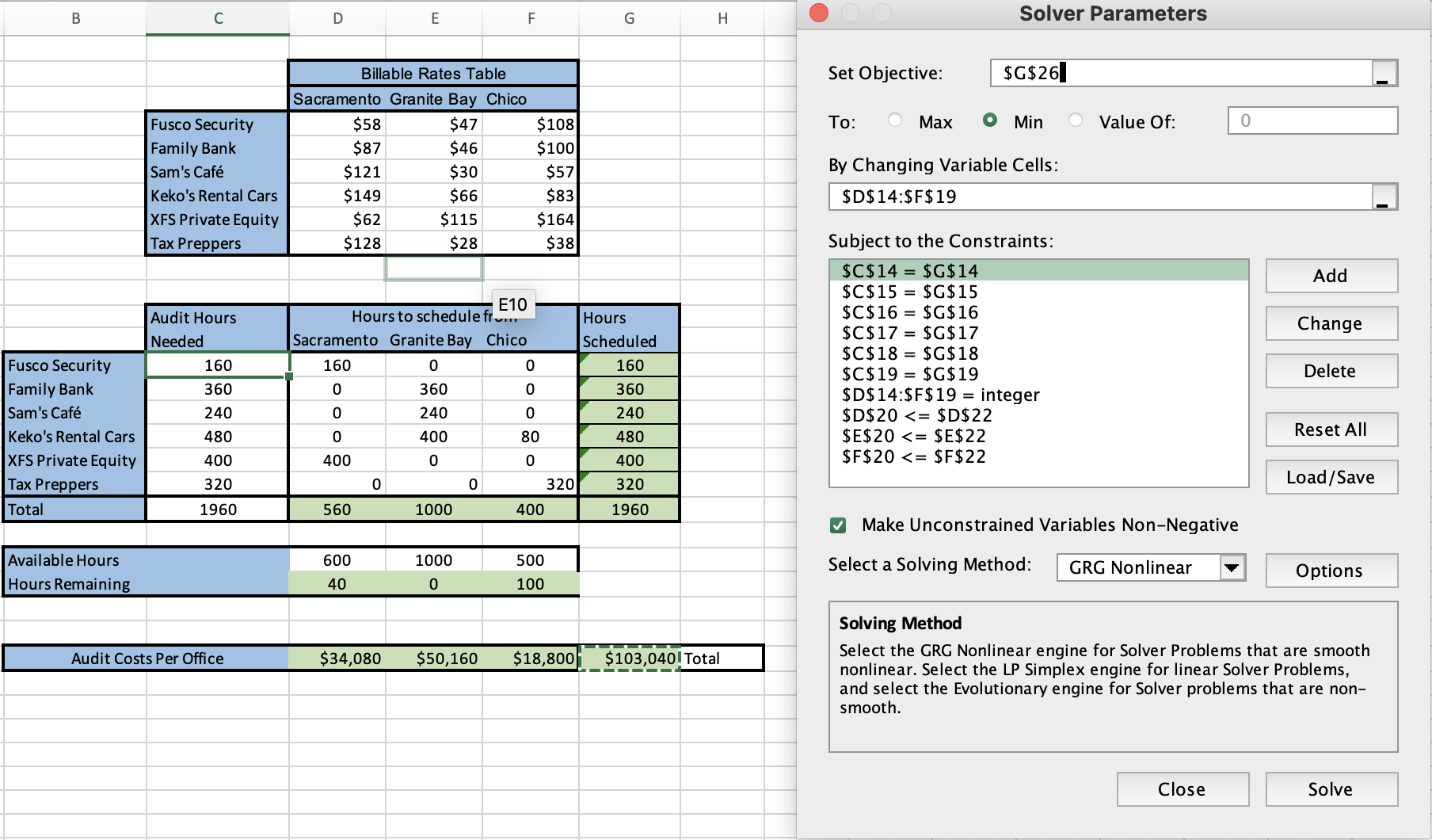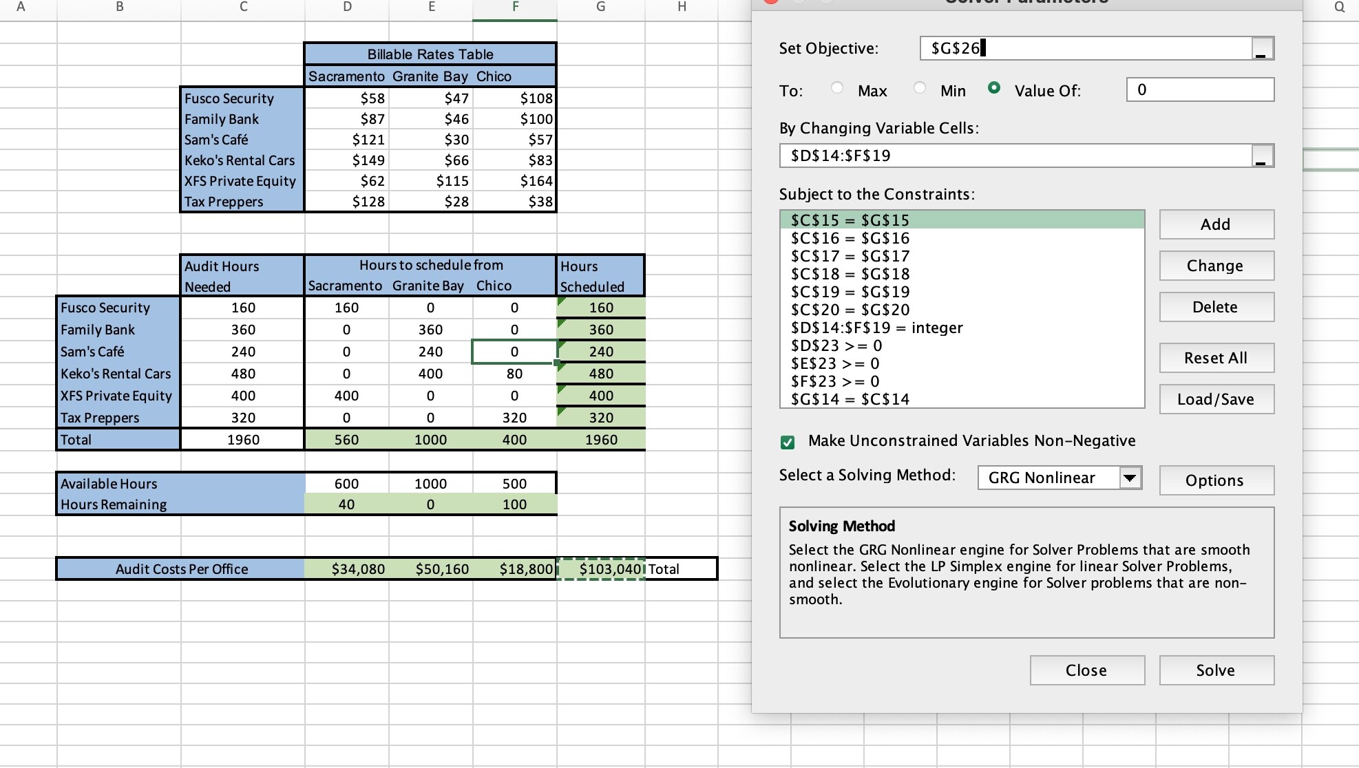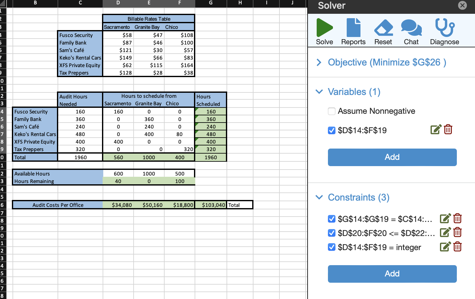 Comments: Make sure you know how to use Solver before attempting this problem.