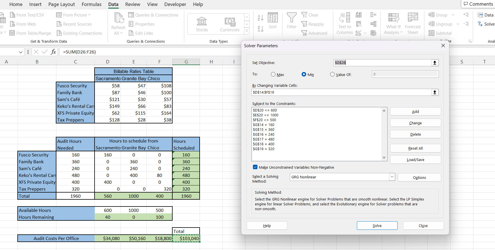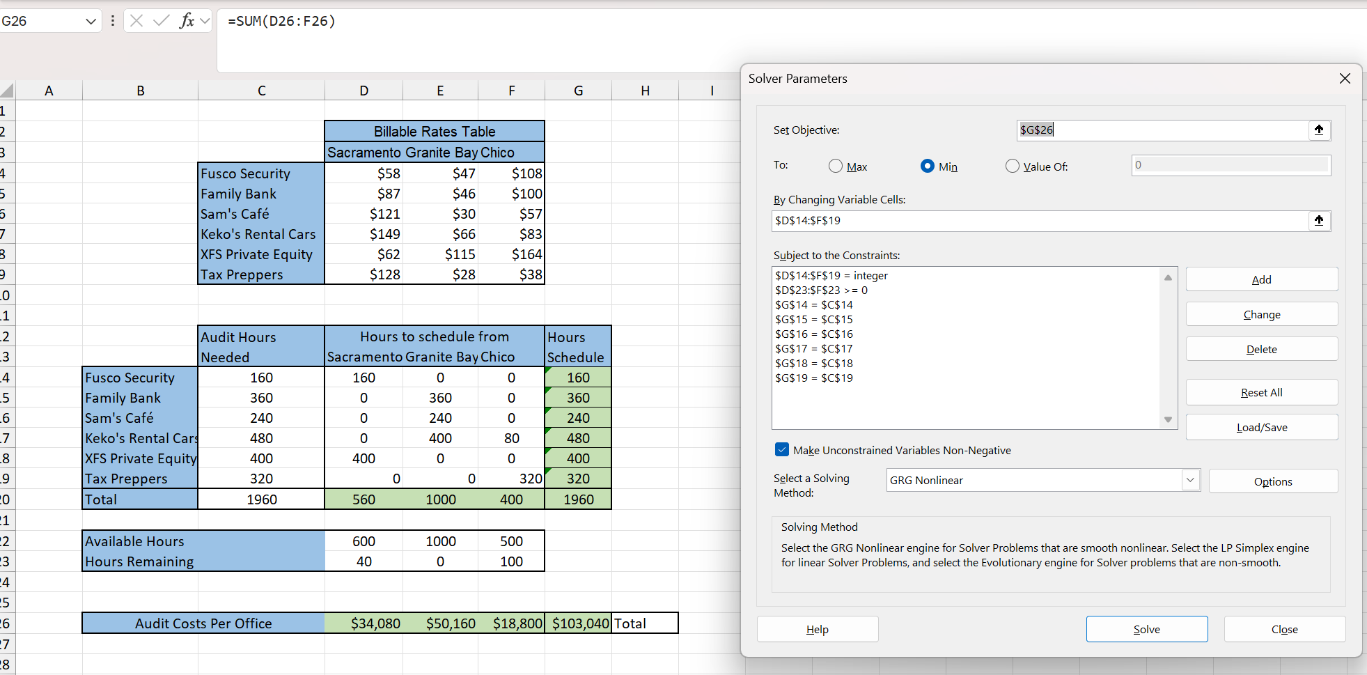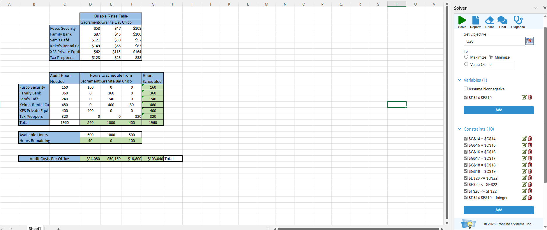 Comments: Make sure you know how to use Solver before attempting this problem.
